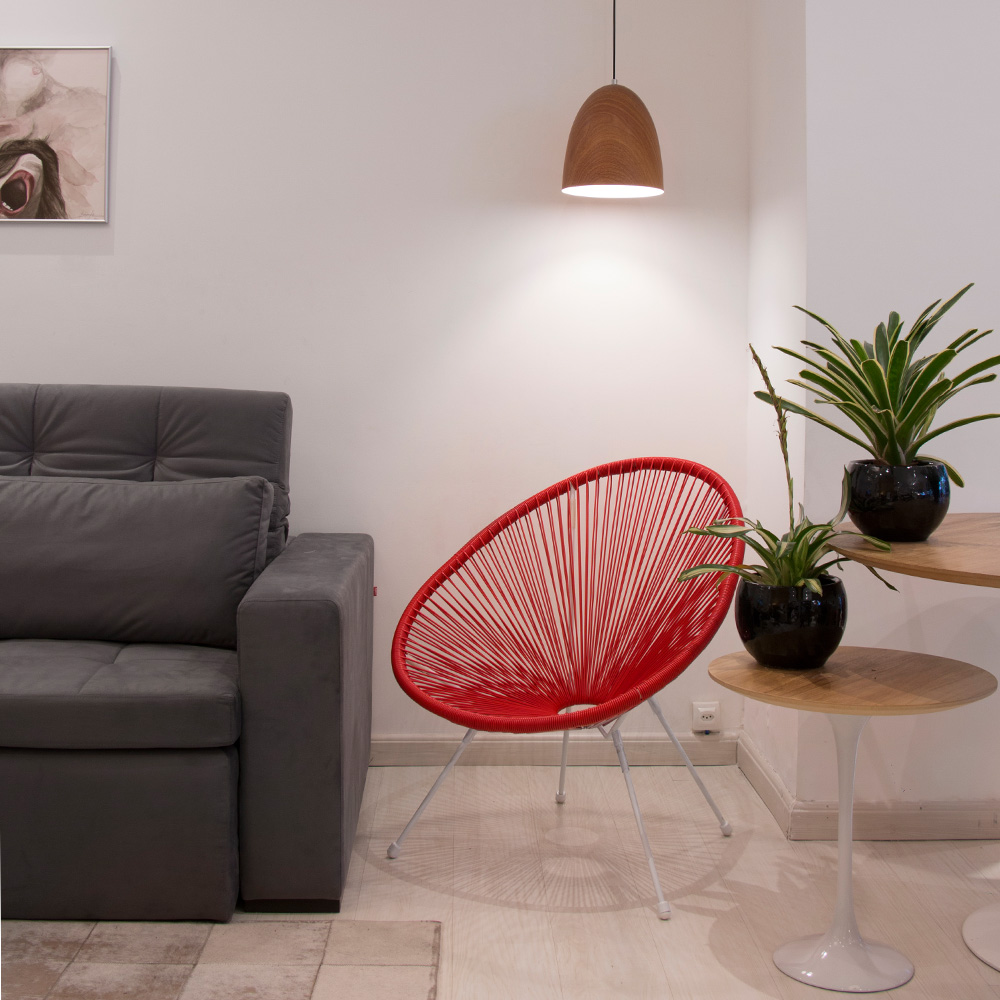 Os detalhes da cadeira fazem com que ela seja versátil, podendo compor um ambiente interno ou externo com facilidade. Além disso, a Acapulco também pode fazer parte da decoração de quartos infantis.